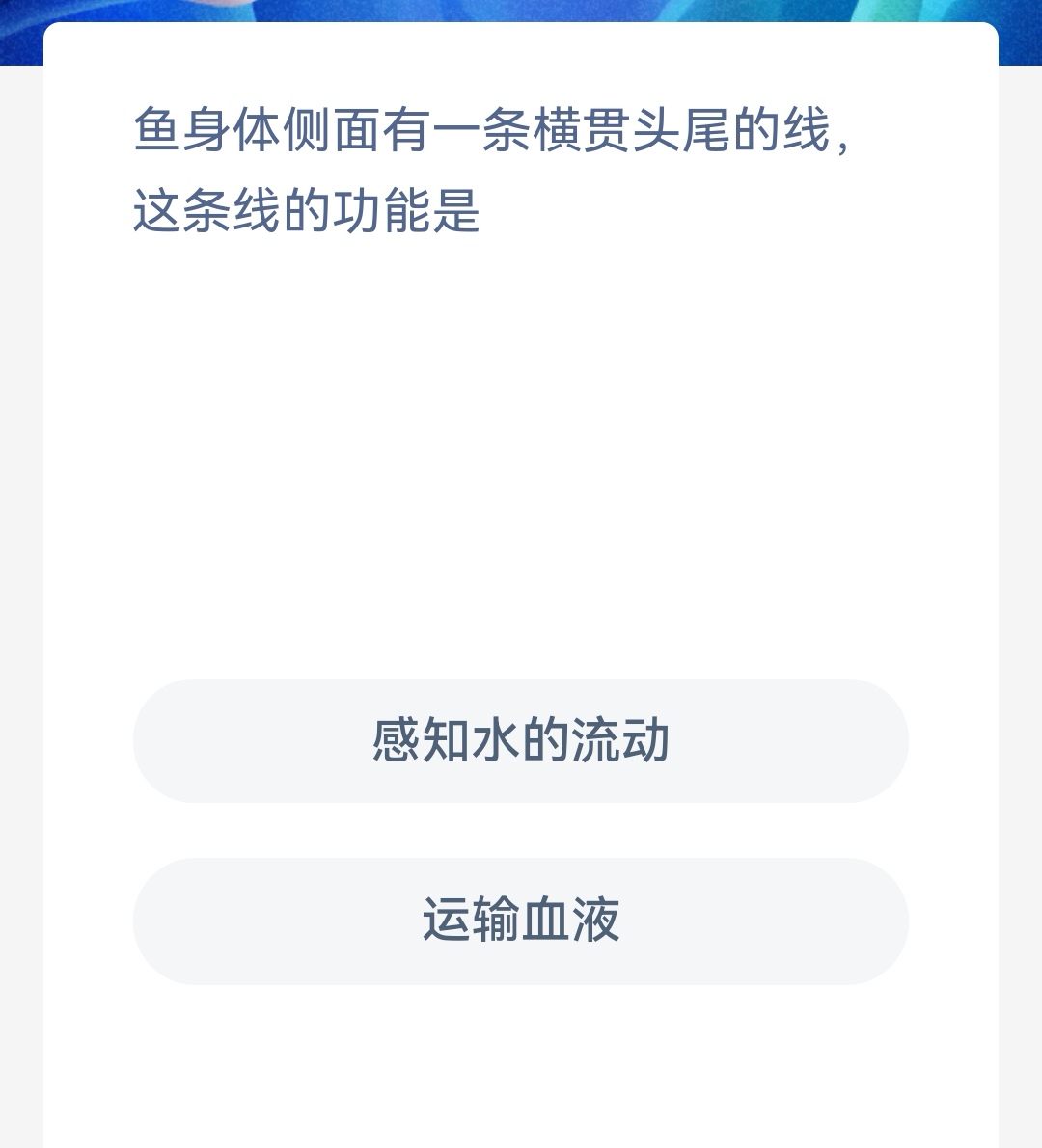 魚身體側面有一條橫貫頭尾的線這條線的功能是,神奇海洋是支付寶螞蟻森林中推出的新玩法,除了收集能量種植外,還可以通過答題等一系列玩法來獲取免費的海洋碎片,集齊碎片就可以合成啦,喜歡的小伙伴趕快來看看神奇海洋4月2日答案最新吧。