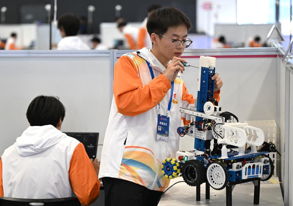 9月19日至23日,第三屆全國技能大賽在河南鄭州舉行。這是選手在自主移動機器人項目比賽中。新華社記者 李嘉南 攝