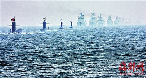 長征六號(hào)導(dǎo)彈核潛艇、長征三號(hào)核潛艇參加海軍成立六十周年海上閱兵海上分列式
