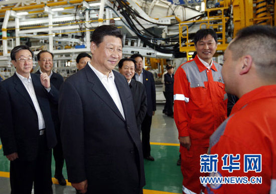在中鐵工程裝備集團有限公司盾構總裝車間,習近平通過模型了解盾構機整體構造和工作原理,然后登上一座85米長的盾構機裝配平臺,察看了裝配情況。他向現場科技人員和職工問好,對他們攻克科研難題、突破盾構機系統集成技術壁壘的自主創新給予肯定。習近平指出,裝備制造業是一個國家制造業的脊梁,目前我國裝備制造業還有許多短板,要加大投入、加強研發、加快發展,努力占領世界制高點、掌控技術話語權,使我國成為現代裝備制造業大國。一個地方、一個企業,要突破發展瓶頸、解決深層次矛盾和問題,根本出路在于創新,關鍵要靠科技力量。要加快構建以企業為主體、市場為導向、產學研相結合的技術創新體系,加強創新人才隊伍建設,搭建創新服務平臺,推動科技和經濟緊密結合,努力實現優勢領域、共性技術、關鍵技術的重大突破,推動中國制造向中國創造轉變、中國速度向中國質量轉變、中國產品向中國品牌轉變。