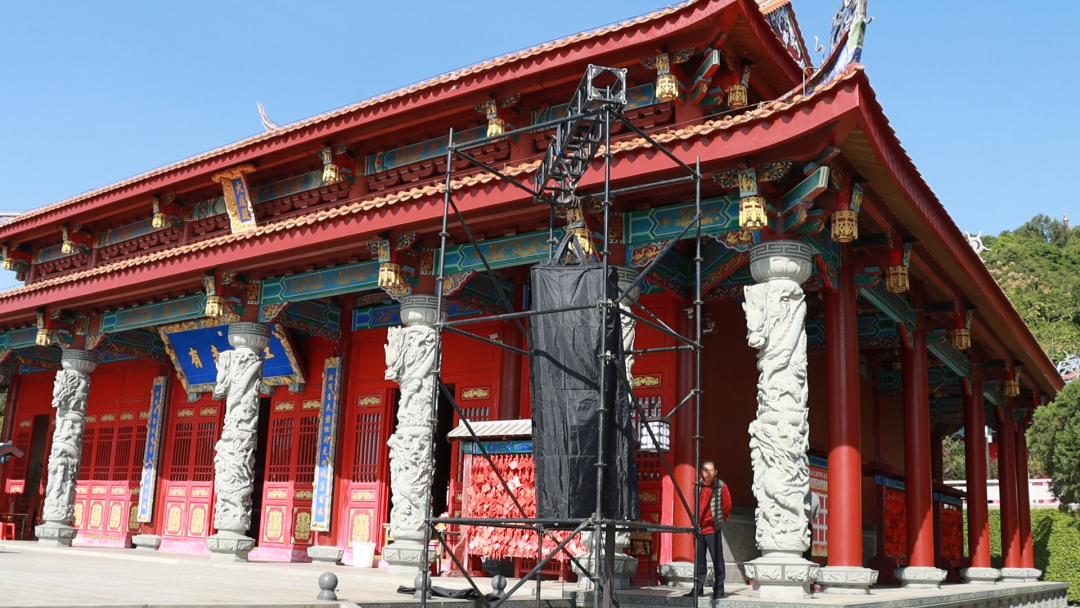 11月26日,記者來到長泰文廟,看到各項工作正在有序進行。入口處,工作人員正在安裝道旗,部分已經布置好的道旗隨風飄揚。在孔子行教像前廣場,工作人員們正忙碌地搭建LED屏、調試設備,布置繡球綬帶,為祀典做好充分準備。