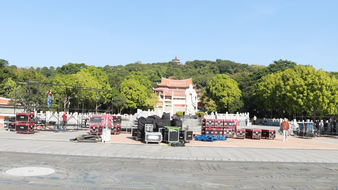 我們今天會完成所有的幡旗、道旗,包括屏幕舞臺的搭建,然后明天會開始正式彩排,28日早上會正式開始祭孔儀式。