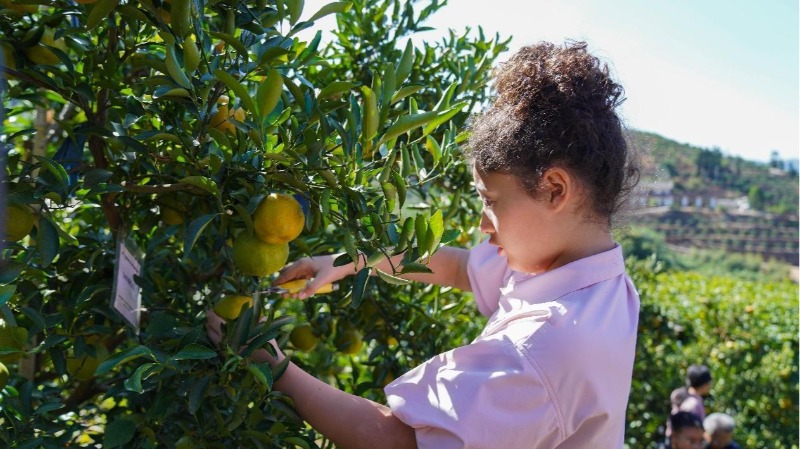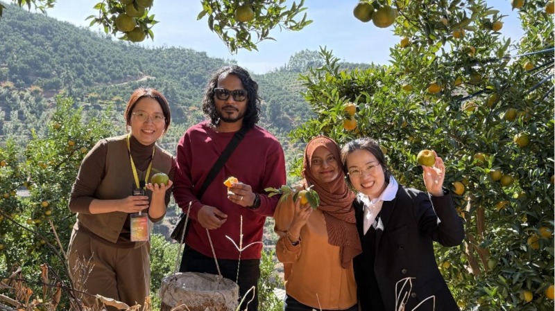 在“十里桃源·卿園”,嘉賓們聚焦永春文旅融合與特色農(nóng)業(yè)發(fā)展,認(rèn)真聽取有關(guān)產(chǎn)業(yè)發(fā)展模式及鄉(xiāng)村振興實(shí)踐的介紹。隨后,大家來到永春蘆柑展示館,通過圖文與實(shí)物相結(jié)合的方式,全面了解“中國蘆柑之鄉(xiāng)”的產(chǎn)業(yè)實(shí)力。使節(jié)們還走進(jìn)果實(shí)累累的蘆柑園,親手采摘、品嘗新鮮蘆柑,在沉浸式體驗(yàn)中感受特色農(nóng)業(yè)的蓬勃生機(jī)。