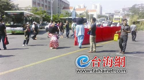 昨日上午10點多,這一幕出現在南普陀與廈大南門之間的道路上。