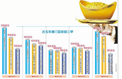 更早前的富豪榜單上,廈門首富曾經由福信集團黃曦、銀鷺集團陳清淵家族、恒興集團的柯希平等擔任過。
